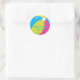 This design features a big round beach ball with yellow, pink, blue and green sections. A template area is provided for you to personalise with your name or other text.
