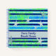 Beachy blues and greens striped notebook with starfish accents and your own cover title. Edit your text and choose your pages style. Created in batik style striped shades of seafoam green and marine blues with navy and white contrasts. Ideal as a budget friendly guestbook, vacation journal or property notebook for storing important notes and information, even recipes. See other matching indoor and outdoor decor items at Camp_and_Cottage on Zazzle.
