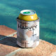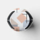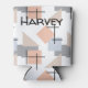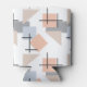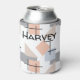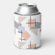 This can cooler has a Bauhaus design of repeating rectangles, squares, diamonds, and triangles in beach colours of tan, grey, blue, and orange.