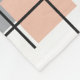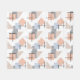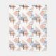This medium fleece blanket has a Bauhaus design of repeating rectangles, squares, diamonds, and triangles in beach colours of tan, grey, blue, and orange.
