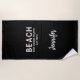 A black background, white text with red hearts. Personalise and add a name. Quote: Beach. Best Escape Anyone Can Have.