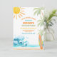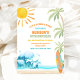 Make waves with this fun and tropical beach-themed birthday party invitation! Featuring bright sun, palm trees, ocean waves, and a surfboard design, this card sets the perfect tone for a seaside celebration. Ideal for kids birthdays, summer parties, or tropical gatherings, it combines vibrant colours with a playful coastal vibe. Personalise with your event details and impress guests with a stylish, festive invite that captures the spirit of a beach adventure.