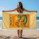 This salty beach blonde is enjoying some time out of the water and under the sun. The gorgeous vintage inspired pin-up mermaid poses while seductively flicking her jewel green tail. The nautical artwork has an aged, vintage effect to reflect the era. This fantasy twist on classic retro poster art will bring you joy. This fun sunshine yellow towel is perfect for your next beach day or pool party!