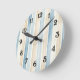 Beach Blue Cream Stripes Round Clock