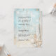 A rustic beach wedding invitation with driftwood, seashell and sand. Blue and beige colours. Personalise and add your names and details.