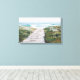 A lovely photo of a boardwalk leading down to the ocean beach. Blues, greens, and greys. Suitable for any room in your home or office.