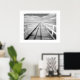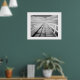 Poster is shown with a black and white photo print of a beach boardwalk dock.