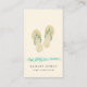 Watercolor botanical island flowers and foliage embellished flip flops with ocean waves accents, sandy beige business cards. Text font style, colour and size, can be customised.