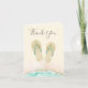 Watercolor botanical island flowers and foliage embellished flip flops on sandy beach, sandy beige folded thank you card.