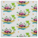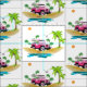 A colourful Caribbean beach buggy is the centre focus of this fabric design. It will inspire an endless variety of projects to remind one of happy Summer days spent on the beach or times cavorting in the islands.