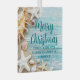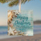 A cute custom beach business holiday gift for a tropical island company. Customize this pretty teal blue wood and seashell photography Christmas ornament with your seaside corporation name or other coastal professional text.