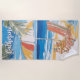 Fun and colourful beach scene with a striped sun umbrella and beach chair that is easily personalised. Great beach towel for vacations in the sun, Spring Break, pool time, bachelorette parties and ocean beach fun!