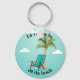 Pretty beach chair and palm tree art on a turquoise / sea foam green background. Optional text template says I'd rather be on the beach. Create your own beach theme key chain by changing the text if so desired.