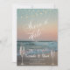 Beach sunset, string lights, champagne glass, and script. Beautifully save the date that can be customised with your name.Select the "customise" button to change the font style,colour and size.