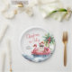 Celebrate the season with this festive and playful paper plate design, perfect for a sunny Christmas in July gathering. It features a laid-back Santa Claus in sunglasses relaxing in a pink flamingo floaty, surrounded by ocean waves and tropical touches—bringing a fun, beachy vibe to your celebration.