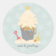 Bring the warmth and charm of a coastal Christmas to your holiday greetings with our Beachy Sand Pail Stickers! Perfect for beach lovers and those who cherish the sea. This design showcases a delightful illustration of a sand pail filled with sand shaped into a Christmas tree. Adorned with tiny beach-themed ornaments, a starfish tree topper, and a small shovel leaning against the pail, this card is a cheerful reminder of sunny days and sandy toes.