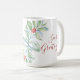 This beach Christmas coffee mug features a watercolor sea turtle with sprigs of holiday greenery and red berries. The words "Seas & Greetings" are set in trendy red script typography. A charming choice for your holiday decor or to give as a BFF gift for the turtle lover in your life. Click to see the complete Christmas theme.