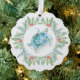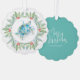 This beach Christmas ornament features a watercolor sea turtle encircled by a wreath of greenery and red berries. The ornaments reverses to feature the words "Merry Christmas" in hand lettered typography over a turquoise blue background. Use the template fields to add your custom greeting. A charming choice for gift giving this holiday season. To see more designs like this visit www.zazzle.com/dotellabelle