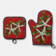 Christmas kitchen pot holder and oven mitts with a tropical beach theme. White starfish, or sea stars, with green holly leaves, is the design on both items. Background colour is deep red. This pretty design will brighten a holiday kitchen and make all that baking so much sweeter!
