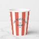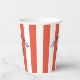 Beach Club Crest Orange Red Cabana Stripe Monogram Paper Cups