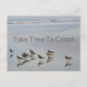 Take Time To Coast. Shore birds gather by the water's edge photograph with coastal comment.