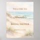 A soft watercolored beach, coastal scenery. Personalize and add the name of the bride to be.