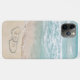 Beach monogram phone case featuring a summer vintage sandy beach with two love hearts drawn in the shoreline, plus yours and your partners initials.