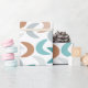 This wrapping paper has a mid-century modern design of crescents in beach colours of tans and blues. Want the same design with different colours? Message me.