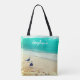 Create a custom personalised tote bag on beach art design with blue ocean and sea gulls in watercolor style. Art copyright Ann Powell all rights reserved.