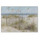 featuring a beautiful seashore photo with blue sky, sand dunes and a rickety wooden beach fence.