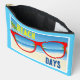 Fun in the sun means beach days, pool days and vacation days. And this travel accessory bag has got you covers. Great for cosmetics and life's little essentials. This whimsical design has an image of the image, as seen through these red sunglasses.