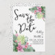 A tropical design that embraces the tranquil beauty of nature mixed with a playful edge that is sure to help you have fun. A blend of calming green tropical leaves, including banana leaves, palms, monstera leaves, and pink princessa plants, alongside soothing purple-pink orchid flowers and protea bloom, intertwined with various other foliage. Adding an element of fun, a black 'messy dot' or 'dalmatian dot' background on back infuses the design with a playful touch (you can remove if you want). Enhanced by a modern handwritten font, this enchanting print radiates charm and sophistication. This versatile design brings a sense of tropical paradise to any setting or special occasion, making it perfect for a destination wedding, or just when you want to add a tropical flare. Pink Green Palm Watercolor Tropical Floral Wedding Save the Date