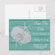 This design features a couple white sand dollars and starfish. Two wedding rings rest on the sand dollars. The background is a seafoam green wood grain background. Personalise this postcard with the details of your wedding. These save the date postcards are great for beach theme or destination weddings. I have this style available in different colour backgrounds, if you don't see what you're looking for just message me. To resize the names to fit, or to add text to the back, click on the Customise It button.
