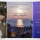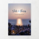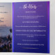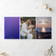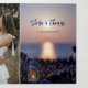 Tri-fold beach or destination wedding invitation featuring two of your own favourite photos. The design shows a bohemian coastal scene with lantern and candle with light sparkles overlooking an ocean. The details panel has a modern purple design. You can use the space also to add all information you would put on an enclosure card, like accommodation or directions etcetera. Alternatively you can use the last page as RSVP card.