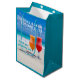 Wedding welcome, or favour, paper bags with customisation. Frosty drinks on beach sand design with two places for your text. Names of the bride and groom, with wedding date, at the top. Add a little “thank you” to guests also, if you wish. Bag colour is sea blue-green with modern white printed font and script in blue-green. You may change the bag size, but text will not fit on all options.