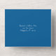 Beach gathering, family reunion invitations with detachable reply cards. Print your invitation text inside on the centre part of the folded card. The reply card will tear off to mail back by the recipient. It takes postcard postage. A calm ocean and sand image is the background for printed black text using a modern font. The outside is dark blue with white text templates for including three addresses. Remove the text for the mailing and return address if you use an outer envelope.