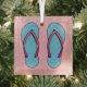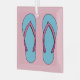 An illustration of a pair of pink and blue beach flip flops. It's summertime! Let's take a break and have some fun under the sun. Aren't you excited to prepare all your stuff for vacation? Don't forget your flip flops.