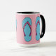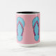 An illustration of a pair of pink and blue beach flip flops. It's summertime! Let's take a break and have some fun under the sun. Aren't you excited to prepare all your stuff for vacation? Don't forget your flip flops.