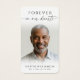 Keep the memory of a loved one close with this custom image personalized prayer card featuring a cherished photo, the sentiment FOREVER IN OUR HEARTS, name and dates on the front and an editable poem, prayer or message accented with a simple cross on the back overlaid on a photo or image that represents your loved one best (shown with a beach sunset image). With its simple yet elegant classic design and modern script typography, it makes a meaningful keepsake to share at a funeral, memorial service or Celebration of Life and offers comfort and a lasting tribute for family and friends. Its small and portable size of 3.5x2" (wallet-sized) makes it convenient for loved ones to carry it with them as a reminder of your loved one’s life and spirit. Personalization makes each card unique.