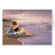 One in a series of at least seven designs of a couple in love on the beach with the waves lapping the shore, and a beautiful sunset in the cloudy sky. The image of the plain beach scene, without the couple, is available on a postage stamp to match these cards.
