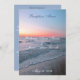 The Beach View wedding collection features a beautiful calm and romantic beach view scene. The front of the design features a beach view photo of calm and romantic waves gently rolling onto the sand and grass of the shore line at sunrise. The beautiful glow of the sunrise has cast an array of colours in the horizon and reflecting off the ocean waves. As you stare into the rolling waves you can almost feel the ocean breeze and taste the salt in the air. The photo was taken at sunrise on Hilton Head Island, South Carolina. The backside of the invite is originally designed in a calming blue shade, but can be changed to any colour by using the "customise it" feature. Use the custom wording template to personalise your wedding reception menu with your own wording. This design is wonderful addition to any outdoor or beach themed wedding.