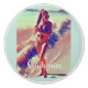 Bikini beach girl model standing at the water's edge wearing a ponytail to customise with your own greeting, name, message, etc