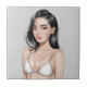 A stunning white-skinned girl with captivating beauty, wearing a white bikini, and sporting shoulder-length hair.