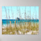 A beautiful photograph of a beach scene with sea grass in the foreground and a pier in the background. This photograph is rendered using a "paint" style in the digital darkroom. Perfect for any wall.