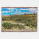 The original artwork by ZoeSPEAK on this Throw Blanket is a view of beach greens, sea oats and all the other beautiful plants which grow in the sand and help to strengthen our coastlines. The blue sky is filled with puffy white clouds, and in the distance, people can be seen at the water’s edge.