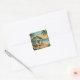 A pretty impasto beach themed sticker with a cute beach house, palm trees and tropical flowers.