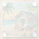 A pretty impasto beach themed coaster with a cute beach house, palm trees and tropical flowers.