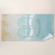 This beach towel design in the soft colours of sea and sand allows you to easily add your own name and text using the provided template. The simple Adirondack chairs image on a distressed, watercolor background is highlighted by a wave accent in aqua and white. Search ID623 to see coordinating seaside elements and additional products with this design.