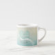 This espresso mug in the soft colours of sea and sand allows you to easily add your own name and text using the provided template. The image of two Adirondack chairs on a distressed, watercolor background is highlighted by a wave accent in aqua and white. Search ID623 to see coordinating seaside elements and additional products with this design.