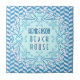 This pretty, personalised beach house decorative tile has a blue-and-white herringbone pattern. The bold shell motif has a classic Art Deco stylised look, complete with starfish and a faint white anchor in the middle. In a vintage 1920's font, easily add your family name. Even the words "Beach House" are customisable, in case you want to add "Lake House," "Summer Home" or any other words you would like.